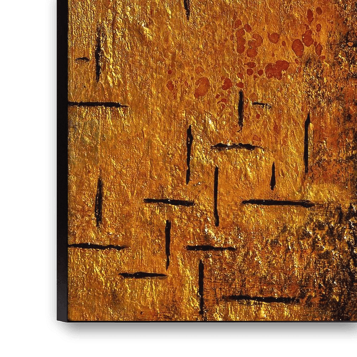 I made this painting because last year was the 150th anniversary of Piet Mondrian. I tried to mix his style with my own. I used a ground of red earth pigment powder and gold and black oil paint. Because of different materials and oil, it has a beautiful effect. Interested in my art? Take a look at my site: www.sanderveen-artshop.nl or make an appointment and come and visit my studio in Veenendaal
