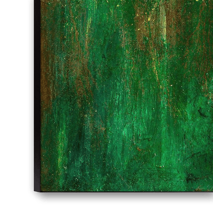 I came up with the title because it took me a long time to find the perfect colour combination and proportions. The many layers of green create a depth, as if you land in another universe. Find the journey in this beautiful mysterious painting by Sander Veen.