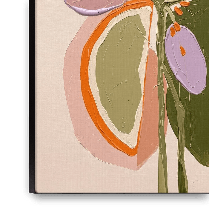 This modern work is a personal depiction of nature's first blooms. I wanted to create a composition that exudes both tranquillity and fresh energy. Using soft pastel colours like lilac and pink, combined with bold moss green and bright orange accents, creates a vibrant image that…