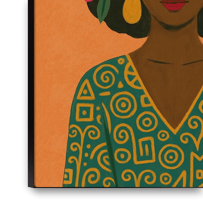 Buy this flower art Modern African Portrait: Woman with Flowers and Tiger by Patricia Leona Art on canvas, ArtFrame, poster and wallpaper, printed on demand in high quality.