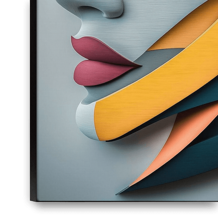 A powerful work of art that brings together geometric realism and modern elegance. Clean lines, vibrant colours and an intriguing portrait create a dynamic and futuristic design. Perfect for lovers of contemporary art who want to add energy and creativity to their interiors.