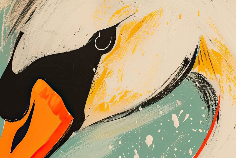 Details: swan, abstract, modern, art, yellow, orange, black, white, red, green