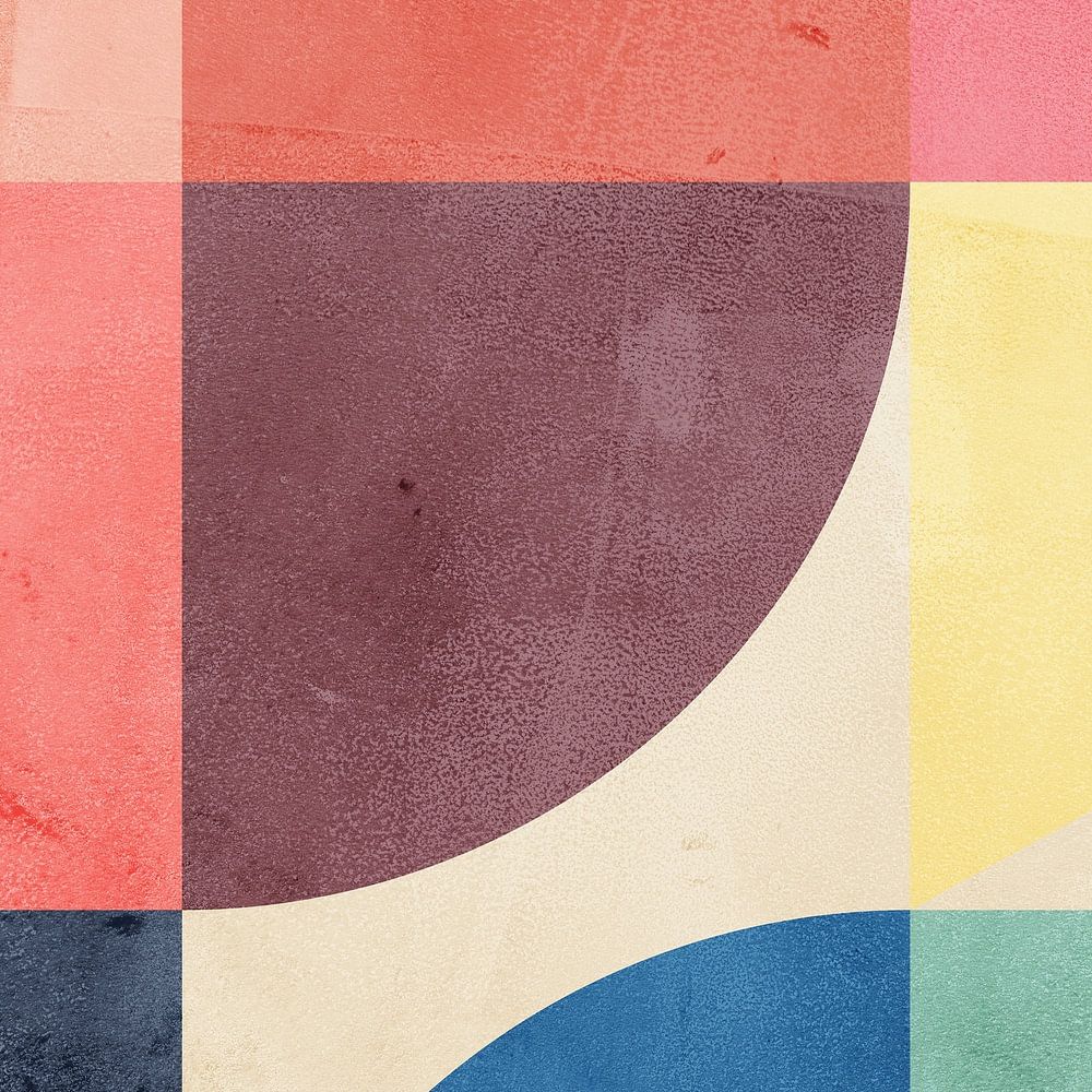 Inspired by modernism movement, collage of geometric shapes and textures in vibrant retro colors.