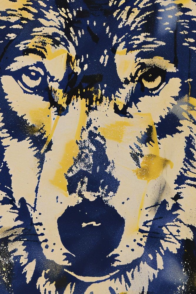 This impressive artwork captures the essence of wild nature with a striking modern touch. It portrays a powerful wolf, rendered in vibrant shades of blue and yellow, highlighting the dynamism and energy of the design. The expressive use of colour and shape gives the image depth and movement, making it a real eye-catcher in any room. This piece is perfect for lovers of modern and street art who want to enrich their interiors with a statement. The combination of abstract patterns and a recognisable animal form creates a unique balance between realism and creativity. Hang this piece in an office or living room to create a powerful and artistic atmosphere.
