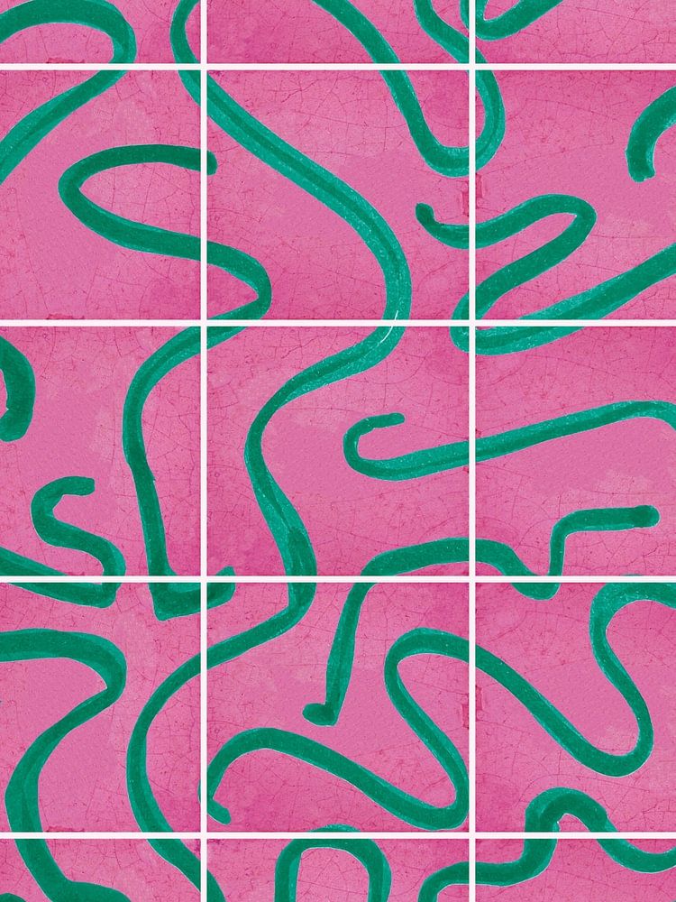 About "Modern and abstract lines on a tile pattern, pink - green"
