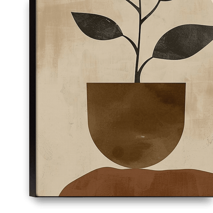 This modern, minimalist illustration captivates with its simple lines and earthy colour tones. With an abstract plant in the foreground and geometric shapes in the background, this artwork adds a calm and stylish touch to any room. Perfect for contemporary art lovers looking for a subtle yet expressive decoration. Ideal for living…