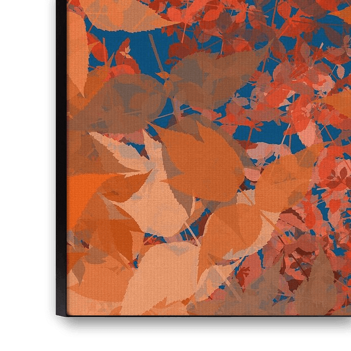 About "Modern botanical art. Colorful leaves in burnt orange, terra and blue."