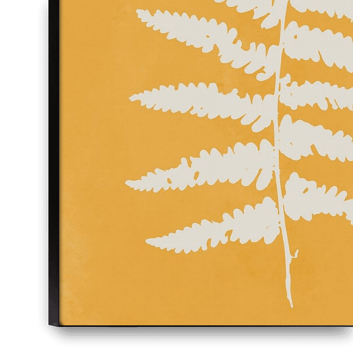 Buy this abstract artwork Modern botanical art. Fern in white on yellow by Dina Dankers on canvas, ArtFrame, poster and wallpaper, printed on demand in high quality.