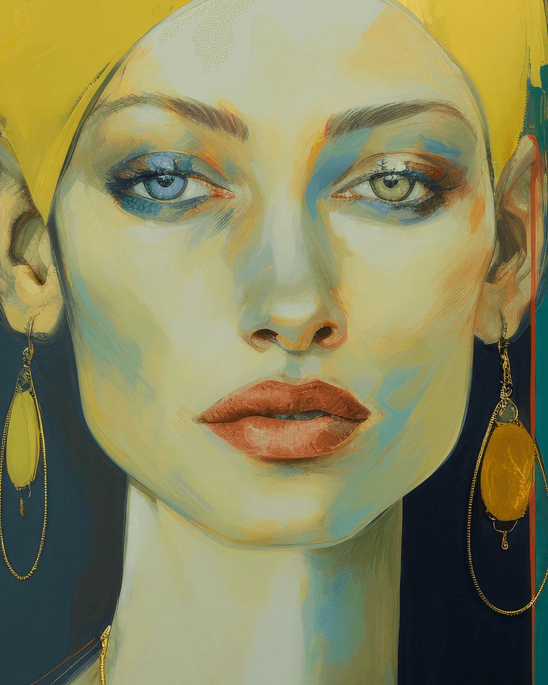 Modern contemporary art portrait. Portrait of a young woman with gold accents. This work really makes a statement on your wall!