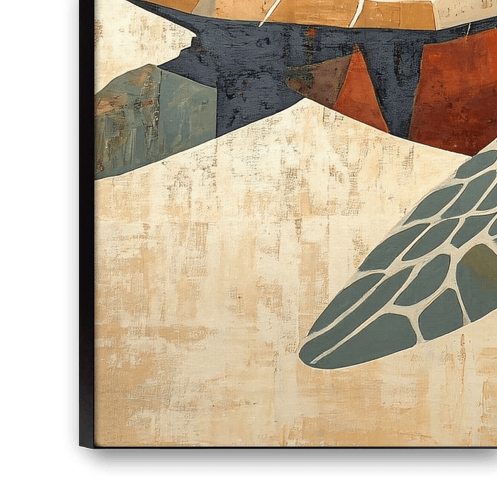 This beautiful artwork combines the graceful shapes of a turtle with a modern geometric style. The combination of earth tones, turquoise and abstract patterns creates a contemporary look that fits perfectly into a contemporary interior. Ideal for the wall in a living room or dining room, the design adds a calming and stylish atmosphere to any space. The details in the lines and the playful colour combination make this piece unique and a real eye-catcher.