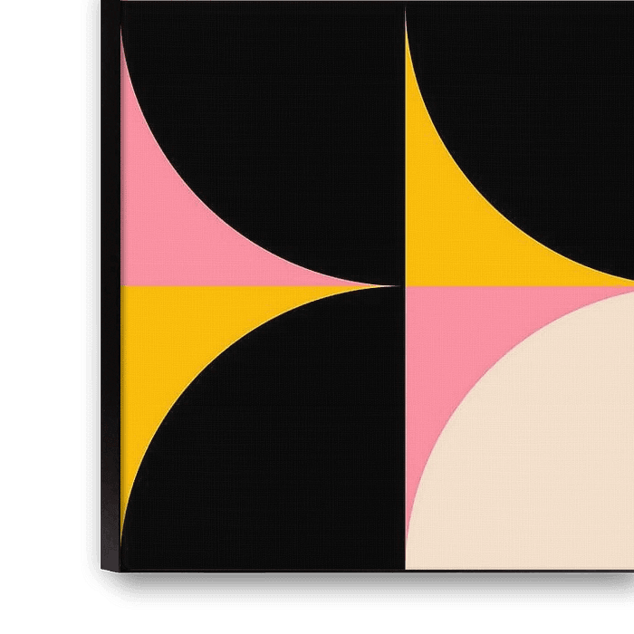 Show your courage with the latest sunny colours with this modern and abstract geometric artwork in the popular Mid-Century Modern Bauhaus style that brings the sunshine into your home.