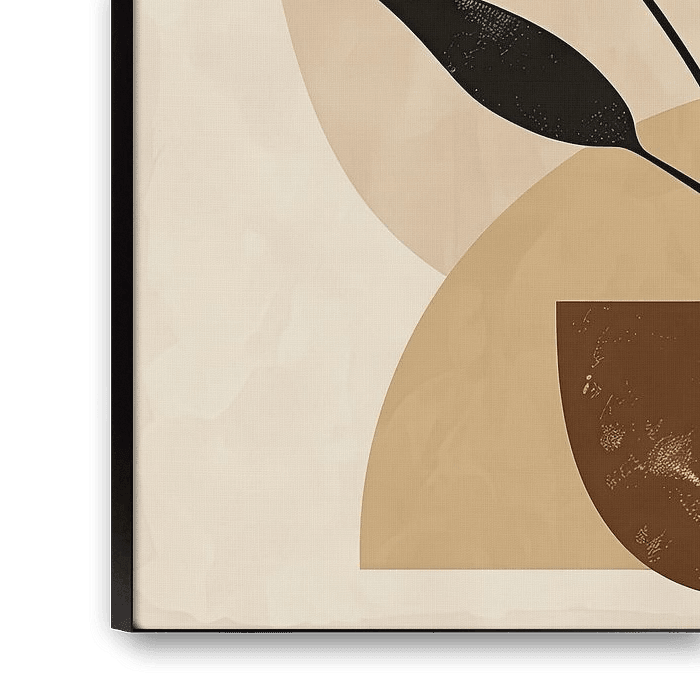 This modern, minimalist illustration captivates with its simple lines and earthy colour tones. With an abstract plant in the foreground and geometric shapes in the background, this artwork adds a calm and stylish touch to any room. Perfect for contemporary art lovers looking for a subtle yet expressive decoration. Ideal for living rooms, offices or creative workspaces.