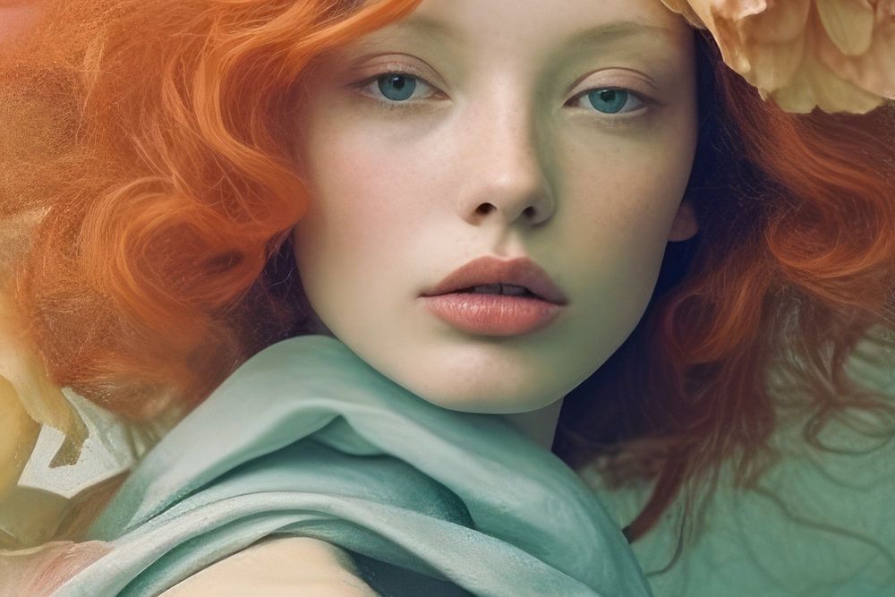 Modern portrait titled "Just buy me some flowers". Beautifully soft colours complement each other, forming a particularly soft palette of pastel colours.