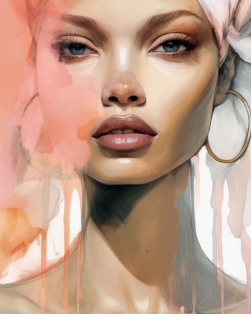Modern portrait in pastel colours. This work fits on any wall, a wall with a light, or just a warmer colour, so that the work contrasts nicely. Beautiful in large format!