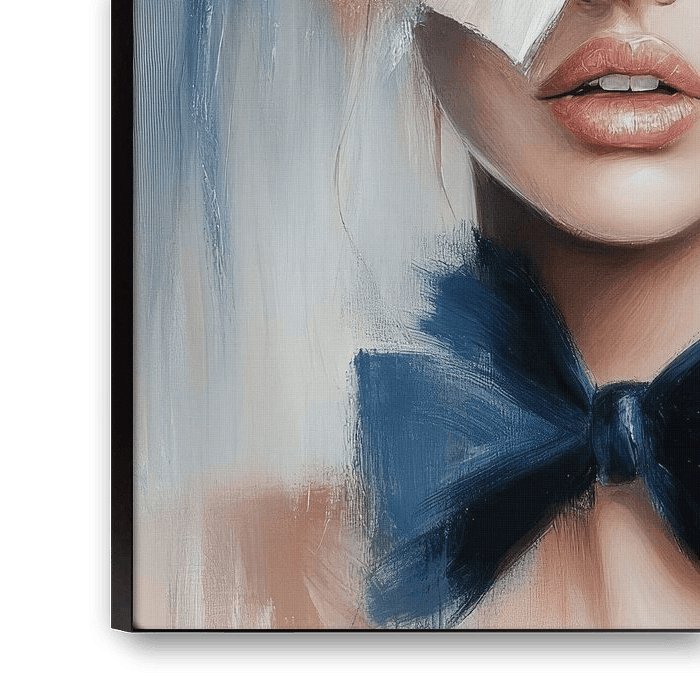 Modern portrait in white and blue, the lady with the hat. A special eye-catcher for your interior! Choose the format and material for this work and make it your own.
