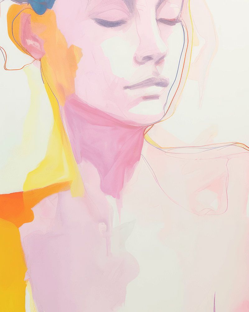 Modern portrait of a young woman, colourful aqaurel. Choose the size and material for this work yourself and make it fit your interior.
