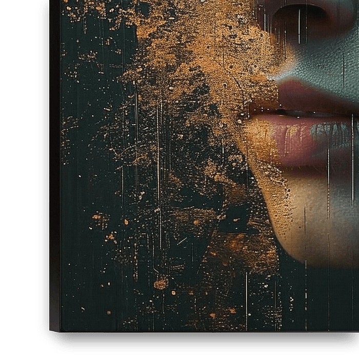 A contemporary abstract portrait enveloped in the mysterious contrasts of black, with vibrant accents of warm orange and gold tones. This work promises to be not only a striking addition, but also a visual experience that continues to captivate. Be enchanted by the unique combination of colours and shapes, making this work a true…