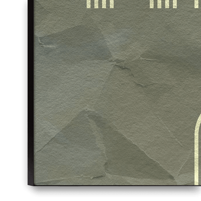 A modern abstract artwork in minimalist style with geometric rainbow shapes. Various shades of green, gold and beige colors on Japanese paper please the eye.