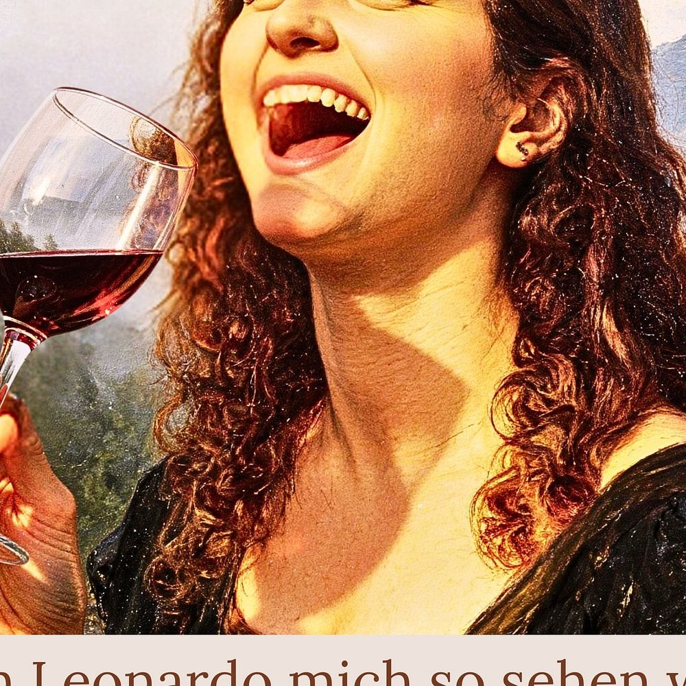 Mona Lisa drinks a glass of wine and enjoys life! But one wonders what Leonardo (da Vinci) would say about this life....
