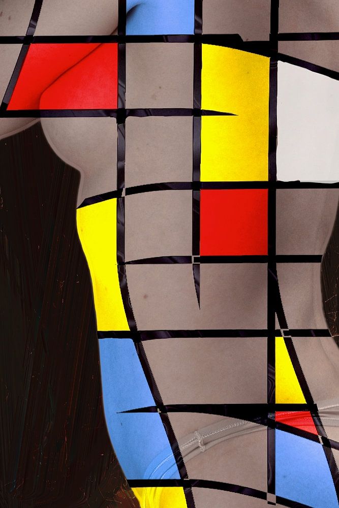 Here I tried to work with the colours red, blue and yellow in a tessellation on the nude.