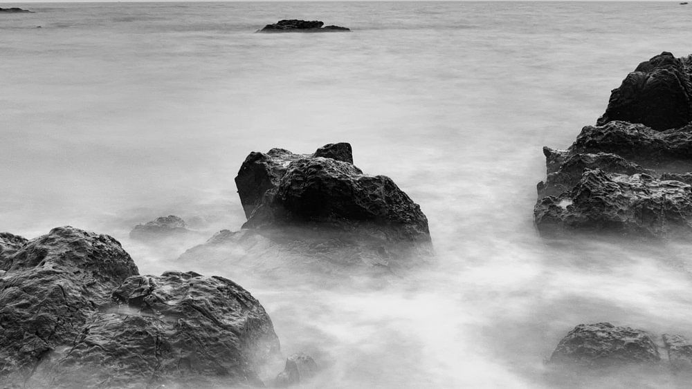 The sea is like a mist between the rocks in the Arabic sea in India. By using a long exposure the sea turns into a mist.