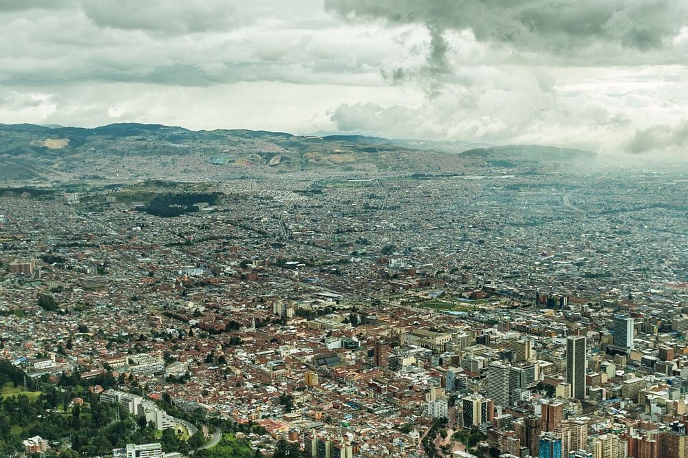 Photo of capital Bogota in Colombia, taken from Mount Monserrate where you take a 45 degree cable car to get to the top and be treated to this view of this huge city. Dark clouds above, the weather can change any moment in this climate.