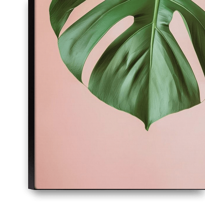 Buy this modern artwork Monstera leaf on pink background by Lauren Wilde on canvas, ArtFrame, poster and wallpaper, printed on demand in high quality.