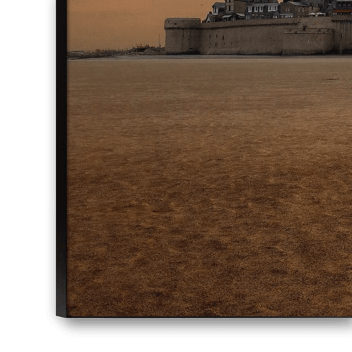 Prachtige opname van middeleeuws monument historique Le Mont Saint-Michel in Bretagne, Frankrijk, tijdens zonsondergang vanaf het wad met laagwater