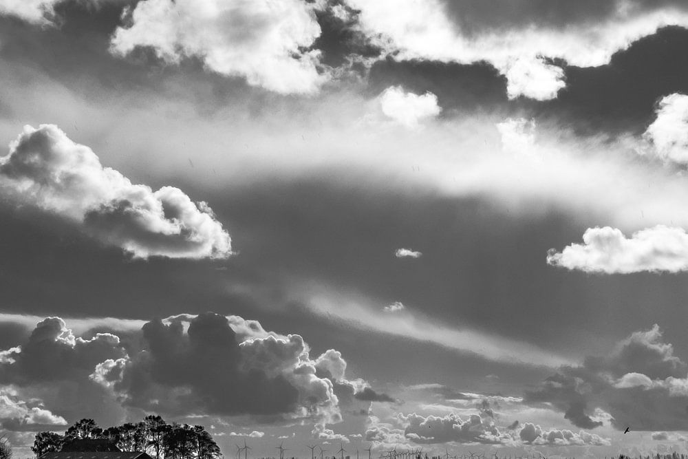Mooie lucht boven het frieze land. Zwart-wit opname