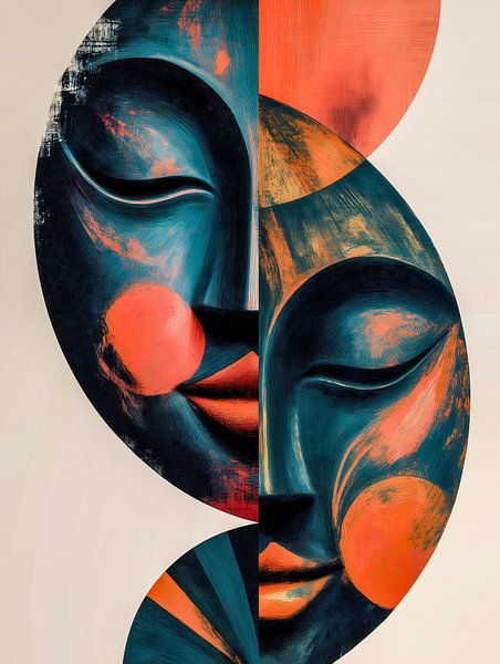 An evocative abstract portrait symbolizing the eternal bond between moon and sun, where light and shadow intertwine in a timeless dance of balance, contrast, and cosmic harmony