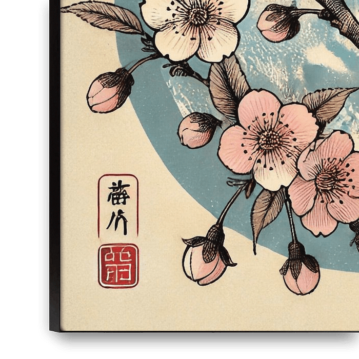 Buy this digital art artwork Moonflower - japandi painting with bird and blossom branch by Kleurenrijk as a reproduction on canvas, ArtFrame, poster and wallpaper, printed on demand in high quality.