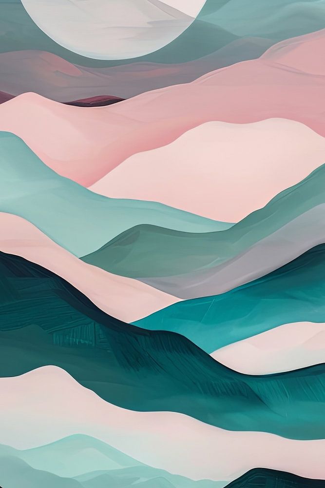 This abstract painting captures the peaceful beauty of a nocturnal landscape, illuminated by a glowing full moon. Gentle hills in pastel colours harmonise with deep, nocturnal blues and greens, creating a calm and soothing atmosphere. The flowing lines and soft colour transitions lend the work a dreamy quality that exudes both modernity and timeless tranquillity. Perfect for lovers of abstract art and idyllic landscapes.
