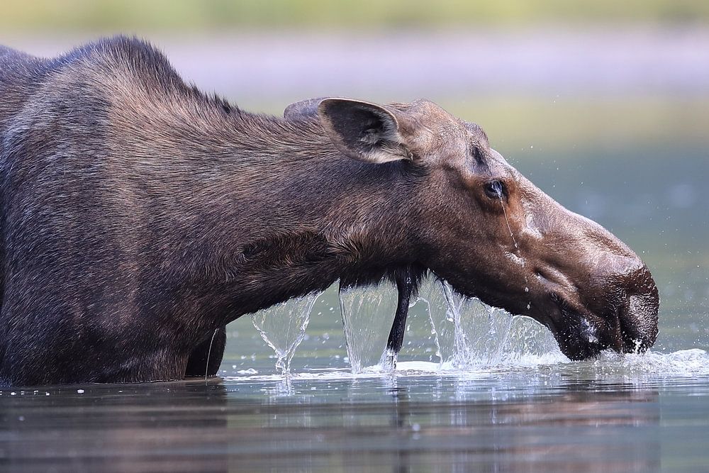 About "Moose cow eating water plants in Lake Glacier National Park in Montana, USA"