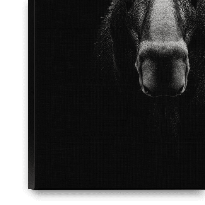 Majestic yet mysterious, the impressive moose looks out of the shadows. Its imposing antlers radiate strength and grace, while the monochrome colour scheme creates a dramatic atmosphere. This work of art unfolds its full charm in a living room, where it becomes a fascinating topic of conversation and attracts the attention of guests.