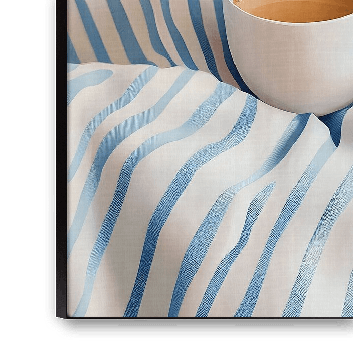 In this artwork, morning coffee is brought to life in a mix of colours and shades, which blend beautifully and evoke a fine atmosphere.