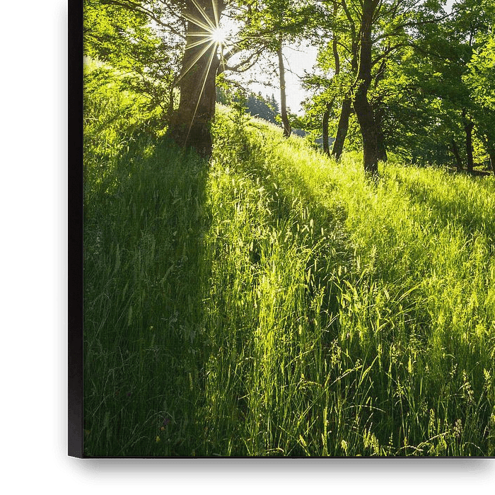 Your chosen art on canvas, stretched in an aluminum frame. Quick and easy to change for a fresh look and exactly as you want it.