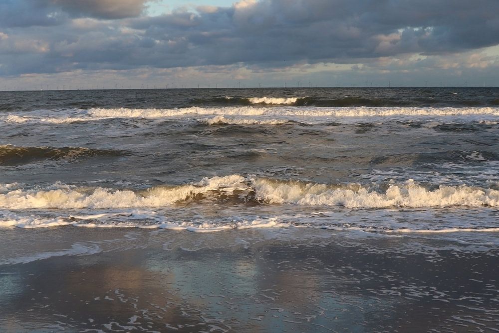 Morning Mood on the Coast with Sunrise, reflections in the Water, Skies with Clouds