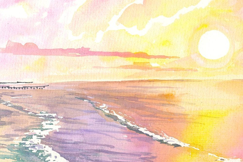 Buy this painting Morning and sunrise on the Mediterranean beach by Markus Bleichner as a reproduction on canvas, ArtFrame, poster and wallpaper, printed on demand in high quality.
