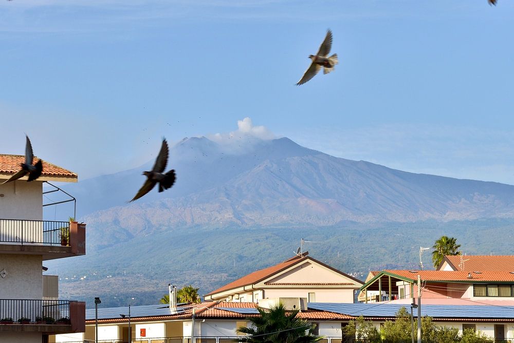 Turning from my hotel into the next side street, I discovered the morning flock of birds in front of the smoking volcano Etna. This natural backdrop is simply the perfect start to a wonderful day's holiday with this fairytale, rural idyll.