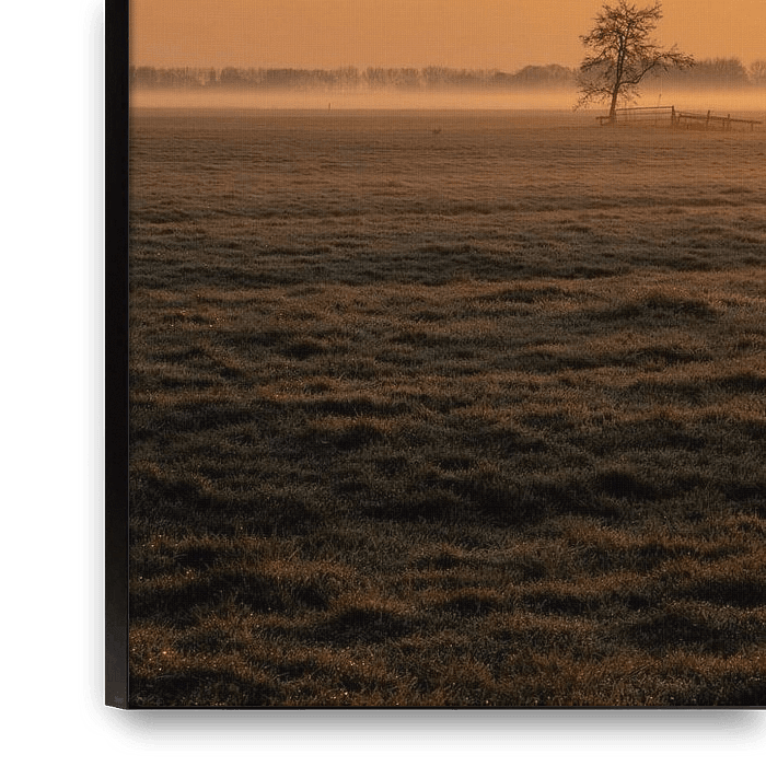 Buy the photo Morning mist over meadow at sunrise by Bram Lubbers on canvas, ArtFrame, poster and wallpaper, printed on demand in high quality.
