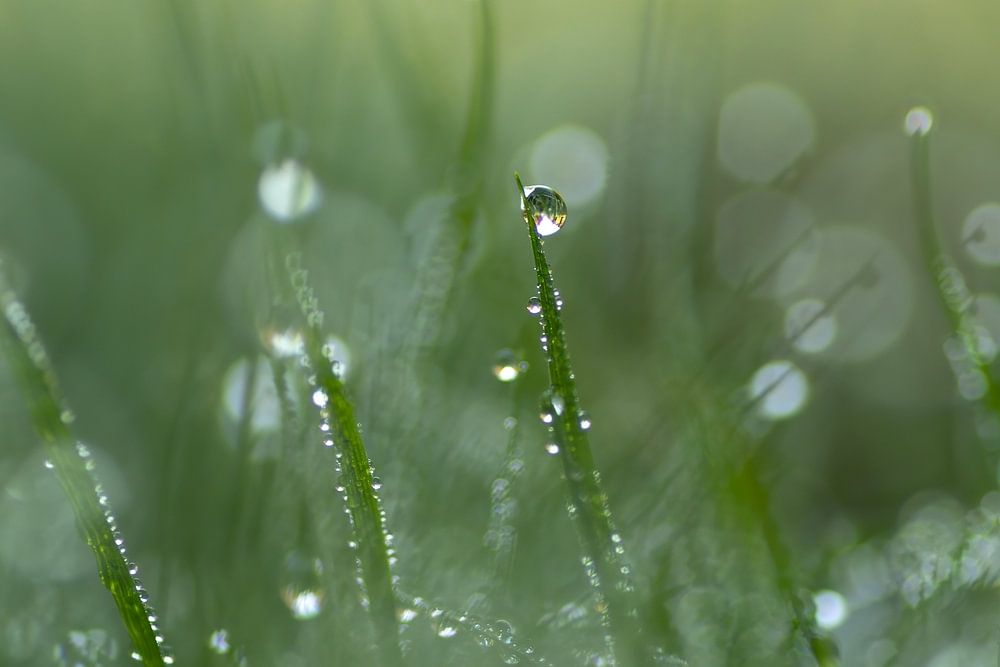 After a cold night, you can often find dewdrops in nature. And these drops produce beautiful and often unexpected images. Take, for instance, a lawn with dewdrops. Getting down on your knees, apart from a wet pair of trousers, will give you such a sparkling and atmospheric photo.
