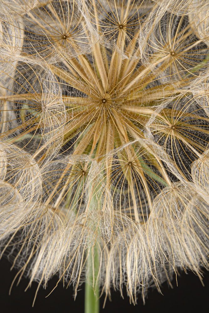 "Morning star (Tragopogon) in the light with dark background" is a macro photo I took of a fluffy bulb of a Tragopogon (also called Morgenster in Dutch). This plant belongs to the Composite family ( Asteraceae) just like the dandelion. Like the dandelion, the flower of the Tragopogon turns into a beautiful ball of fluff after flowering. The fuzz does differ from that of the dandelion. The fluff of a Morning Star (Tragopogon) looks a bit like spider webs attached to the stalk with the seeds. If you zoom in on this work, you can see this clearly. When making this work, I chose a shallow depth of field. This creates depth in the picture because the further back you look in the work, the fainter the fluff becomes.