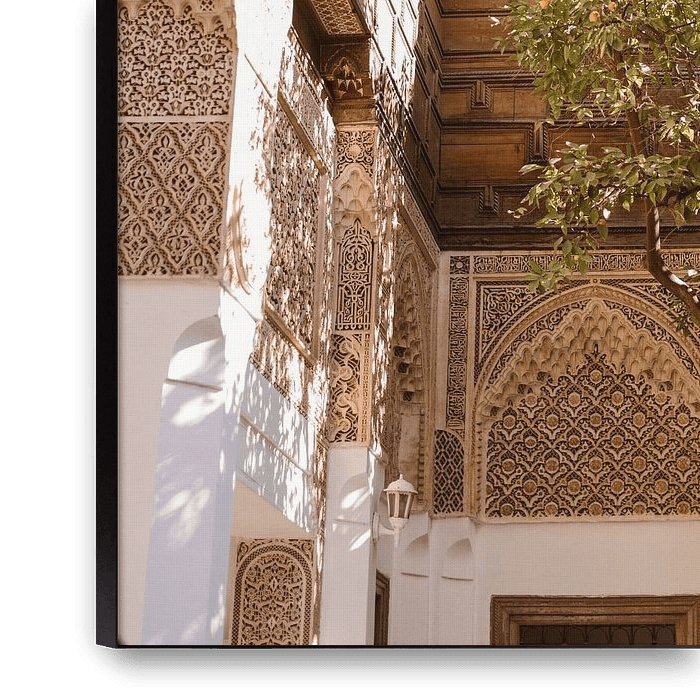 Tropical greenery and Moroccan architecture come together at the beautiful Bahia Palace in Marrakech, Morocco. Walls full of details, for me true art! Plus the orange trees that give it a cheerful atmosphere.