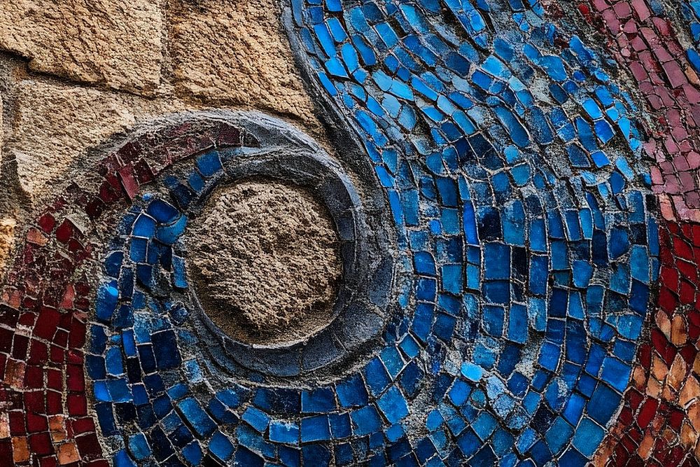 Imagine a powerful spiral that radiates in soft shades of blue and red. This artistic mosaic structure tells stories of movement and vibrancy, it almost seems alive. Ideal for a living room, it brings a harmonious note and a touch of creativity to any room that calls for individuality.