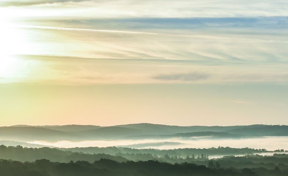I took this picture in the early morning when the sun had just risen. We see this beautiful landscape in the morning when we wake up in our little house on top of a mountain in France. You often imagine yourself "on top of the world" . Nature with all its sounds and every time different views is so fascinating. Often in the morning you sit above the clouds and the whole valley is full of fog. Views to justifiably keep quiet