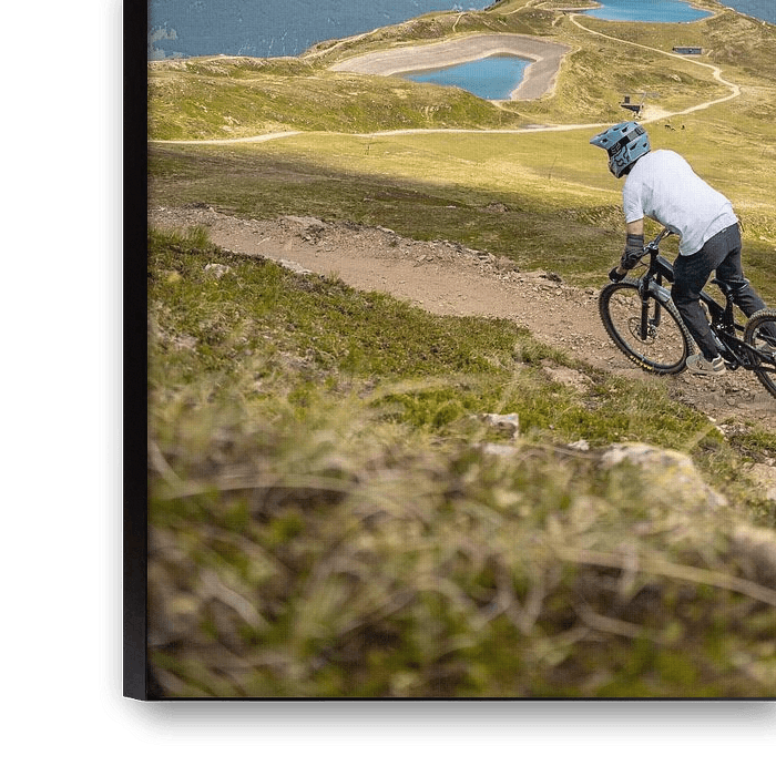 Buy the photo Mountain biking in Serfaus, Tyrol by Leo Schindzielorz on canvas, ArtFrame, poster and wallpaper, printed on demand in high quality.