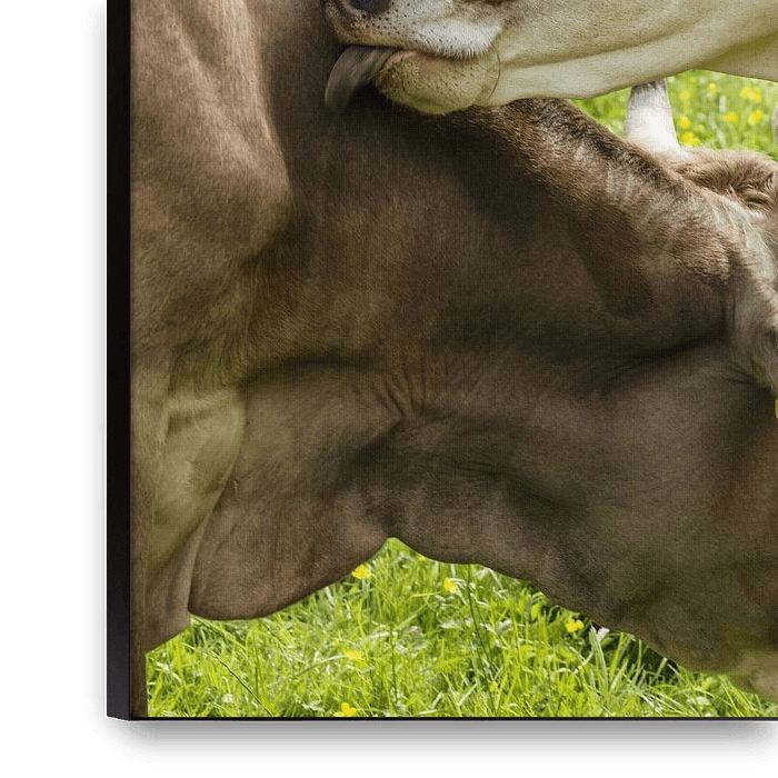Buy this cow art Mountain cows with horns groom their fur by Besa Art on canvas, ArtFrame, poster and wallpaper, printed on demand in high quality.