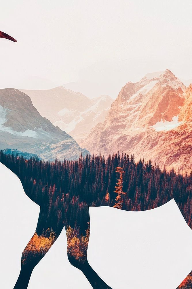 A majestic goat wanders through an impressive landscape of mountains and forests, which is embodied in its body. This harmonious combination of animal and nature radiates tranquillity and a sense of adventure. Perfect for the living room or a creative office to encourage lively conversation and inspiration.