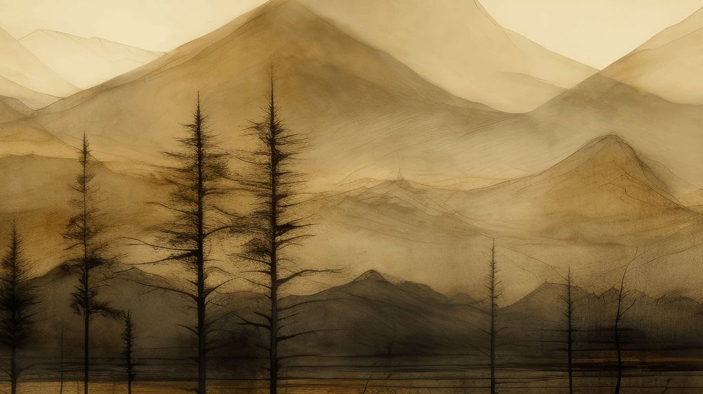 Mountain landscape in the mist. Choose your own size and material for this work and make it completely to your liking. Modern abstract.