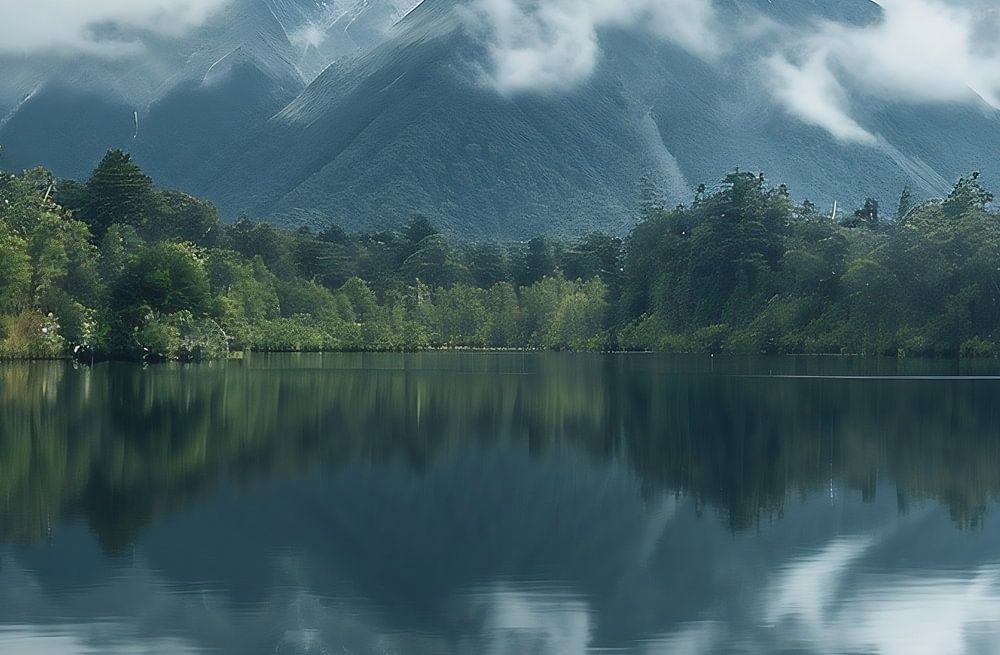 Buy this landscape artwork Mountain panorama with reflection by Arndt-Christoph Föcks on canvas, ArtFrame, poster and wallpaper, printed on demand in high quality.